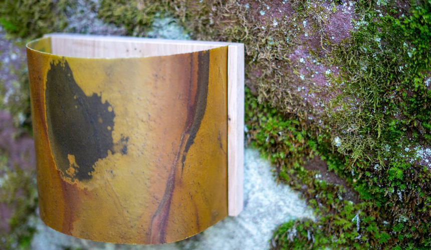 Die Hillbelly Wandleuchte verbindet puristisches Design mit natürlichen Materialien zu einer Lichtskulptur von zeitloser Schönheit. Ein sorgfältig ausgewähltes Stück europäischer Eiche bildet den Rahmen für einen transluzenten Schirm aus hauchdünnem Steinfurnier.